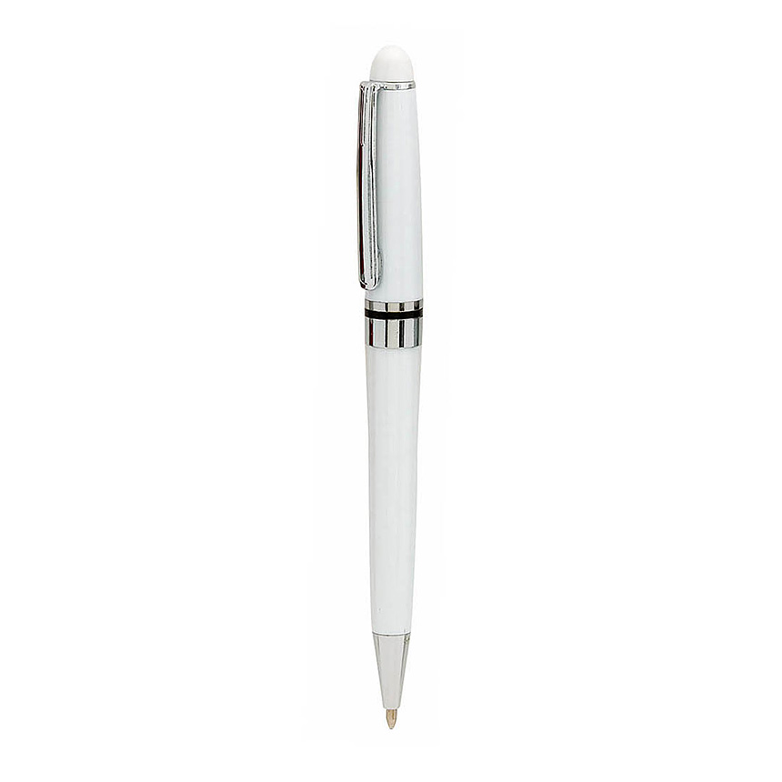Druckkugelschreiber im stilvollen Bicolor-Design mit leuchtend silberfarbenen Details und einem glatten Gehäuse in kräftigen, leuchtenden Metallic-Farben. Weiß  - foto