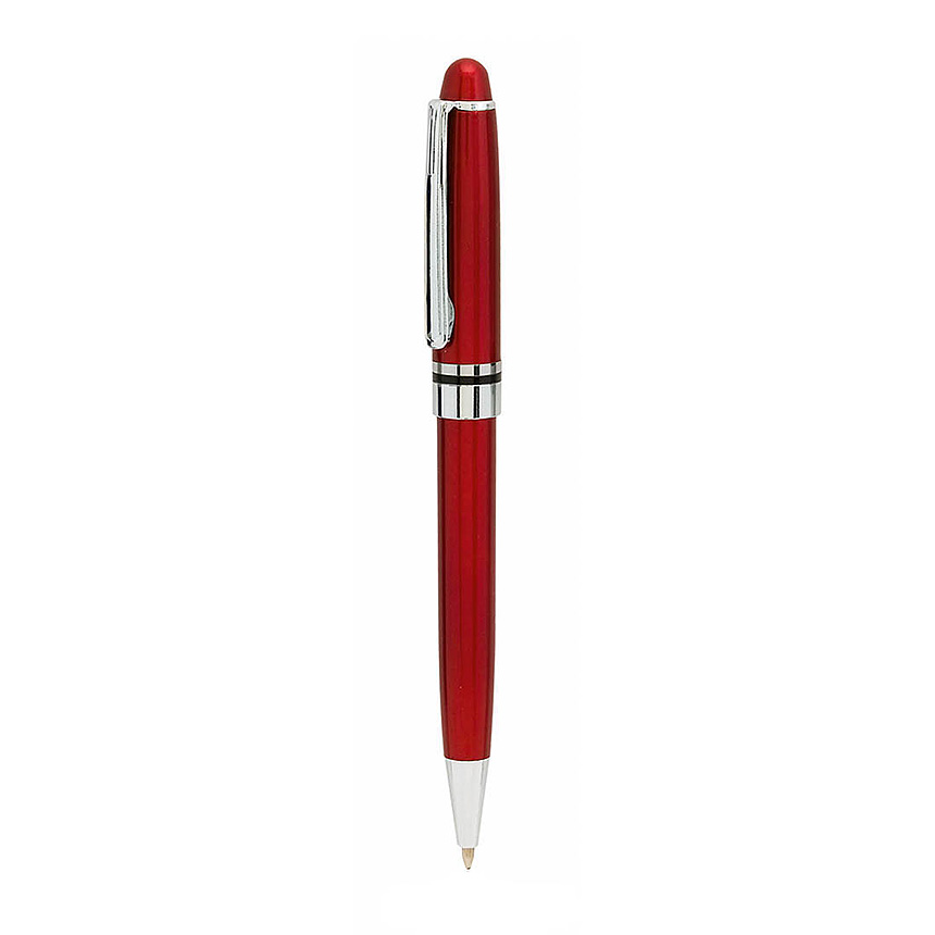 Druckkugelschreiber im stilvollen Bicolor-Design mit leuchtend silberfarbenen Details und einem glatten Gehäuse in kräftigen, leuchtenden Metallic-Farben. Rot - foto