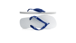Flip-Flops mit weißen Sohlen aus widerstandsfähigem EVA und PVC-Riemen. In leuchtenden Farben und erhältlich in den Größ