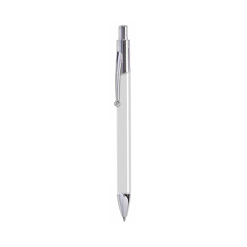 Druckkugelschreiber im originellen zweifarbigen Design. Mit metallischem Gehäuse und glatter Oberfläche in fröhlichen Farben. Silberne Spitze und Clip. Weiß  - foto