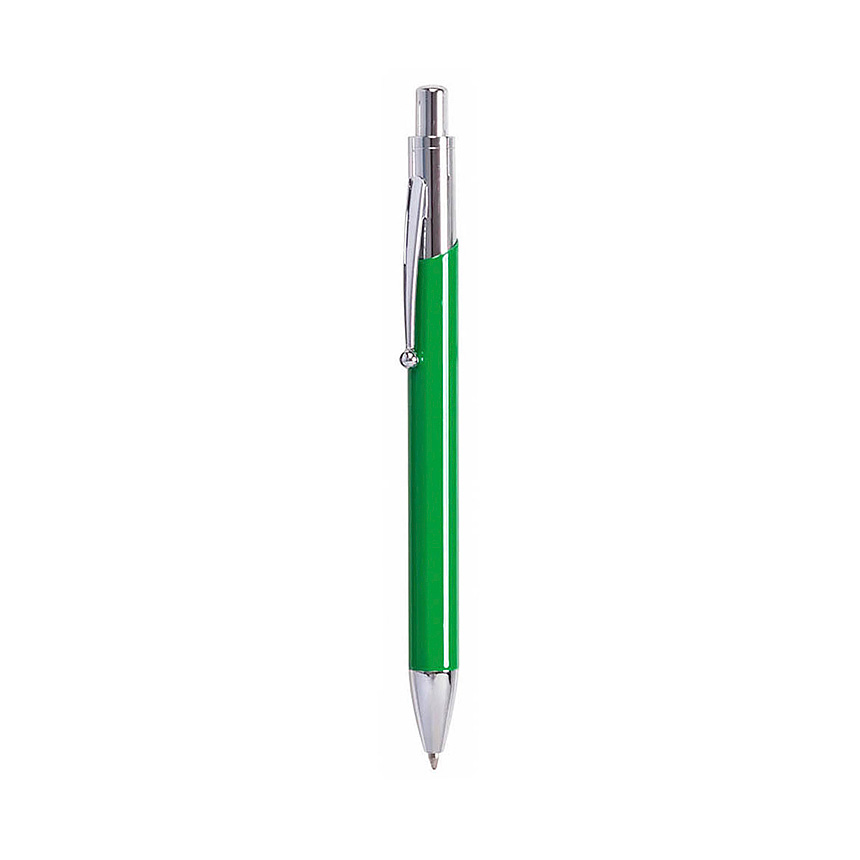 Druckkugelschreiber im originellen zweifarbigen Design. Mit metallischem Gehäuse und glatter Oberfläche in fröhlichen Farben. Silberne Spitze und Clip. Grün - foto