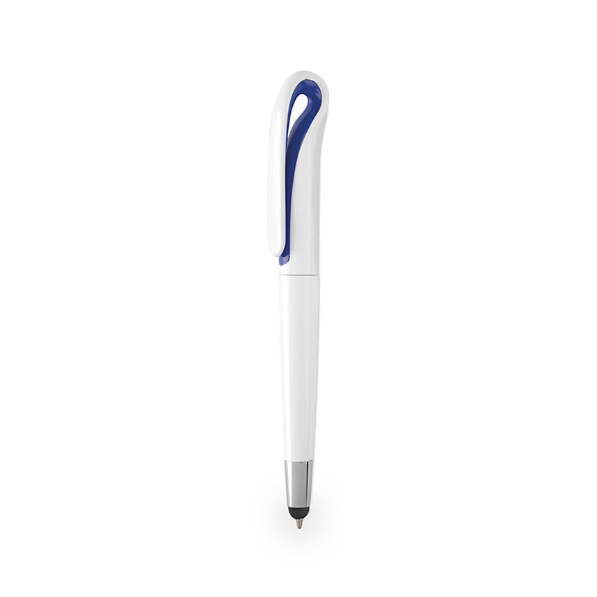 Pointer-Kugelschreiber mit Drehmechanismus und Aluminiumgehäuse in glatter Metallic-Optik in verschiedenen Farben. Details und Ringe in Silber. Weiß  - foto