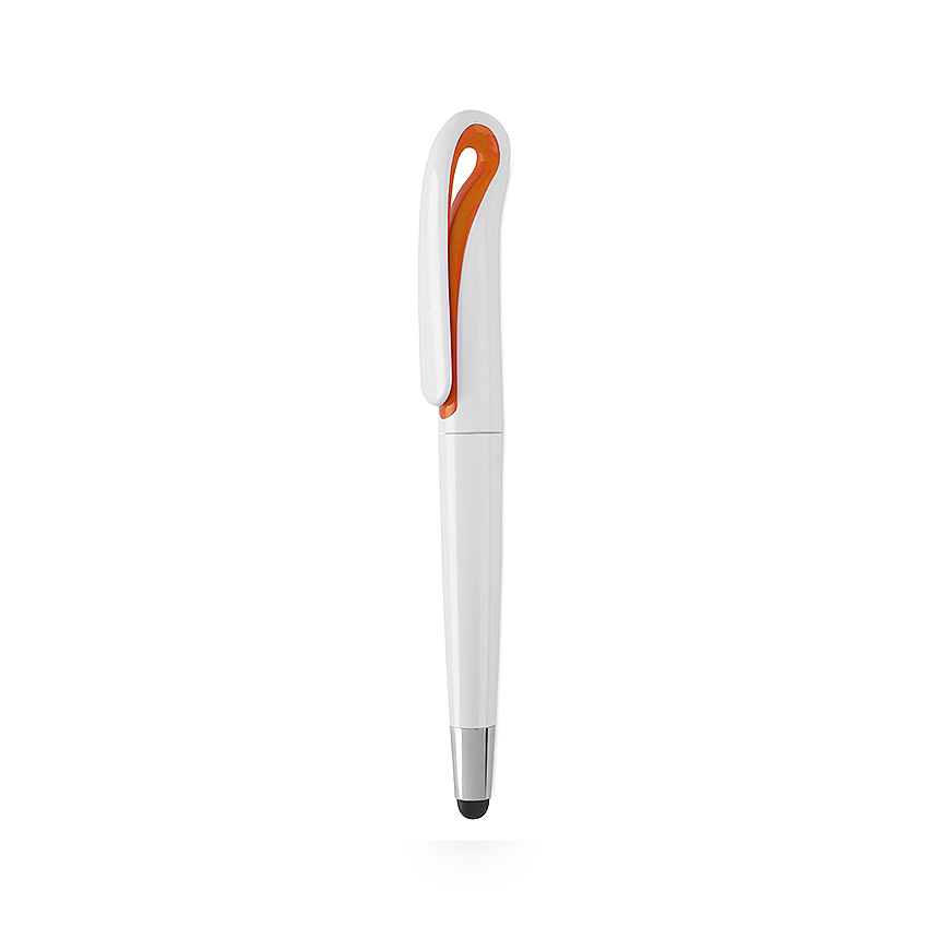 Pointer-Kugelschreiber mit Drehmechanismus und Aluminiumgehäuse in glatter Metallic-Optik in verschiedenen Farben. Details und Ringe in Silber. Weiß  - foto