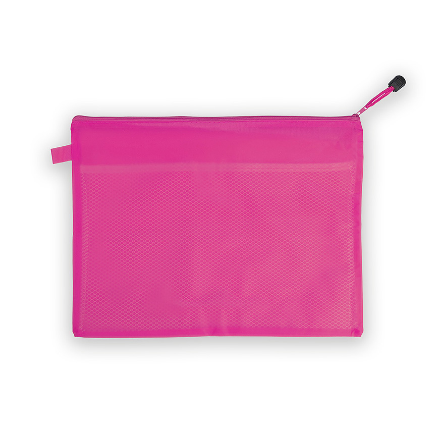 Originelle, hermetisch verschlossene Dokumententasche mit Korpus aus elegantem, farbenfrohem PVC. Farblich passender, verstärkter Tragegurt für bequemes Öffnen.