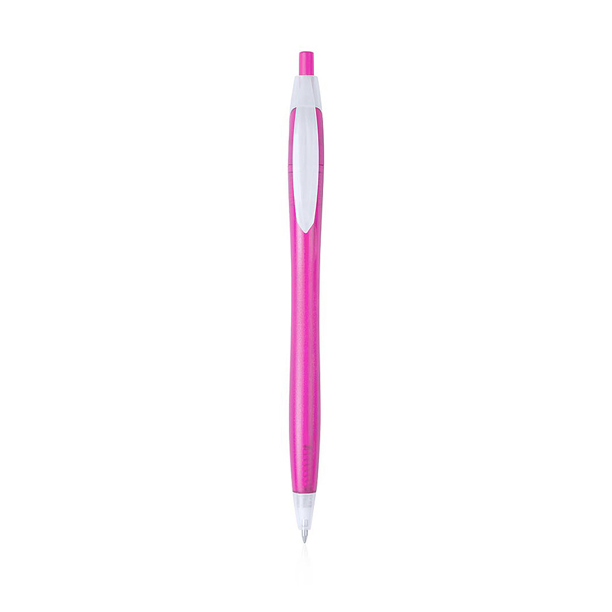Druckkugelschreiber mit auffälligem zweifarbigen Design und geschwungenem Schaft, in fröhlichen, durchscheinenden Farben und mit flachem Clip. Blauschreibend. Fuchsie - foto