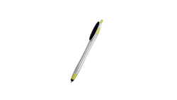 Druckkugelschreiber im auffälligen zweifarbigen Design mit farbenfrohen Details und einem geschwungenen Gehäuse in glattem Silbermetallic.