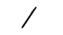 Stilvoller zweifarbiger Drehkugelschreiber mit glänzenden silberfarbenen Details und einem glatten, schwarzen Gehäuse.