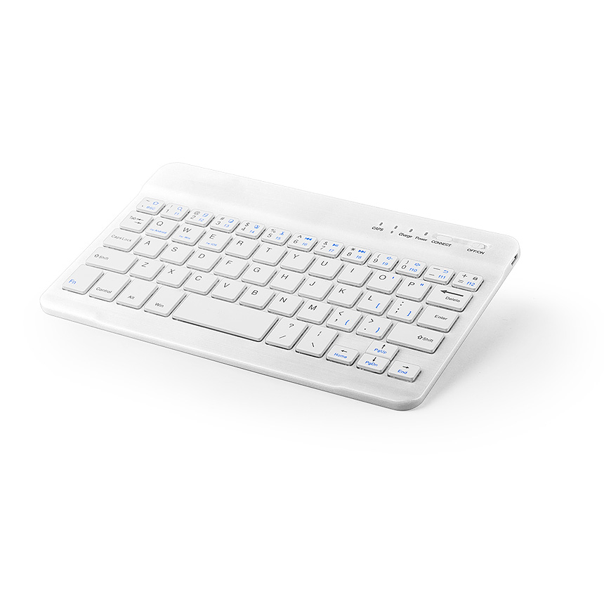 Kompakte Bluetooth-Tastatur in fröhlichen Farben. Kompatibel mit jedem Betriebssystem, wiederaufladbar über Mini-USB-Kabel und mit ISO-spanischer oder… Weiß  - foto