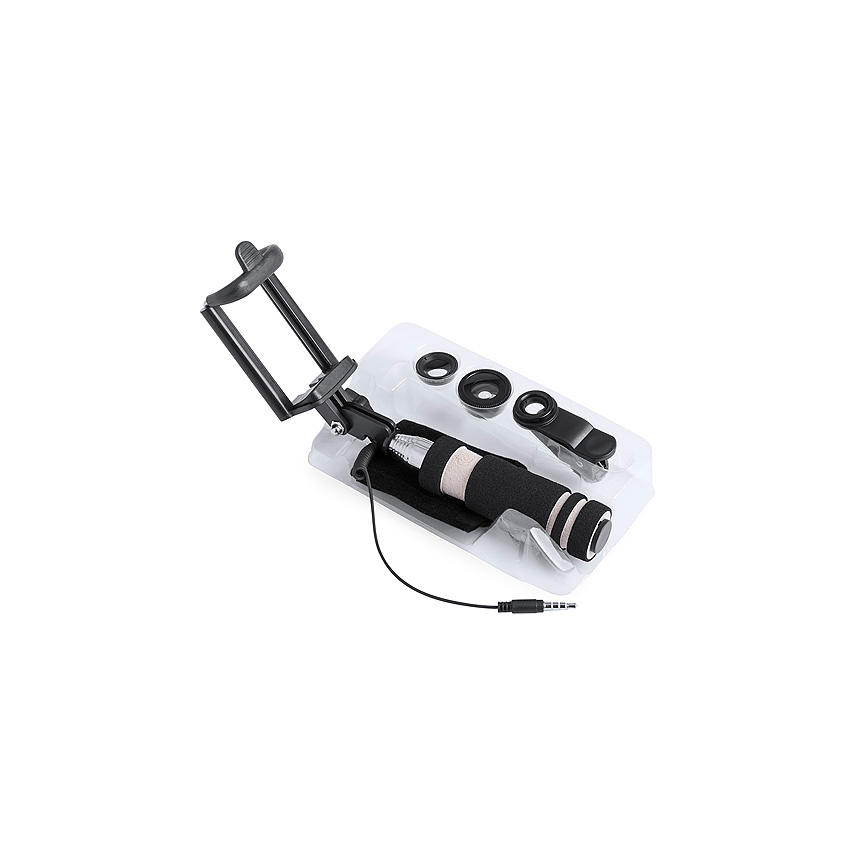 Selfie-Stick-Set mit Effektlinsen. Inklusive faltbarem Einbeinstativ in minimalistischem Design mit 3,5-mm-Klinkenanschluss, Anti-Rotationssystem und… schwarz - foto