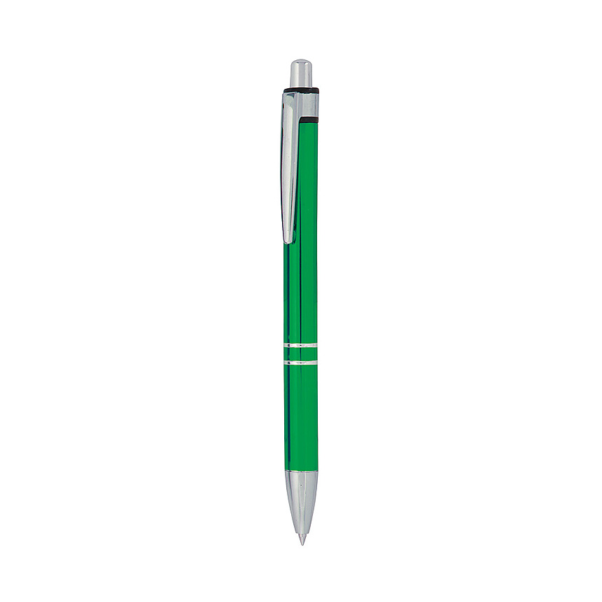 Druckkugelschreiber im originellen zweifarbigen Design. Mit glattem Aluminiumgehäuse in leuchtenden Farben. Details und Ringe versilbert. Grün - foto