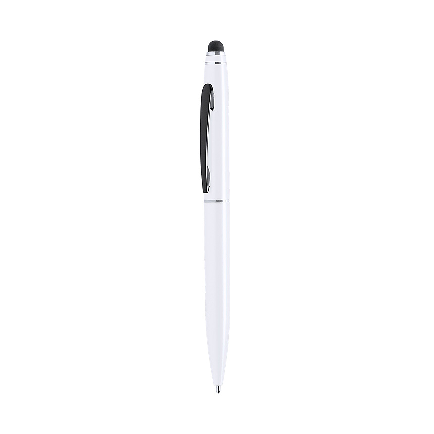 Pointer-Kugelschreiber mit Drehmechanismus und Aluminiumgehäuse in glatter Metallic-Optik in verschiedenen Farben. Details in Schwarz und Ringe in Silber.