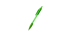 Kugelschreiber mit Druckmechanismus, transparentem Gehäuse in fröhlichen Farben. Weicher, angenehmer Griff mit farblich passendem Clip. Blauschreibend. Ref.