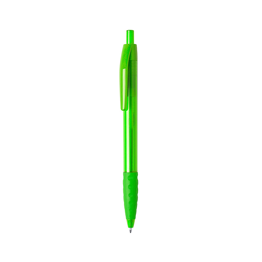 Kugelschreiber mit Druckmechanismus, transparentem Gehäuse in fröhlichen Farben. Weicher, angenehmer Griff mit farblich passendem Clip. Blauschreibend. Ref. Grün - foto