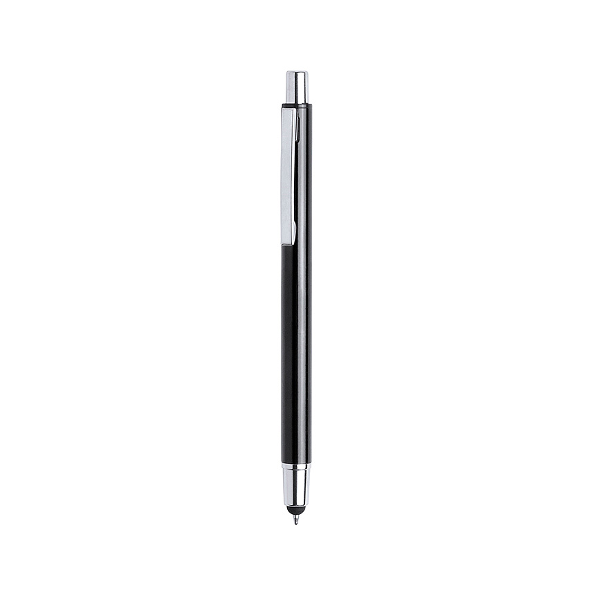 Kugelschreiber mit Druckmechanismus in kräftigen Farben, mit farblich passendem Zeiger. In glänzendem Aluminium-Finish und schwarzer Tinte. Ref: 5224 schwarz - foto