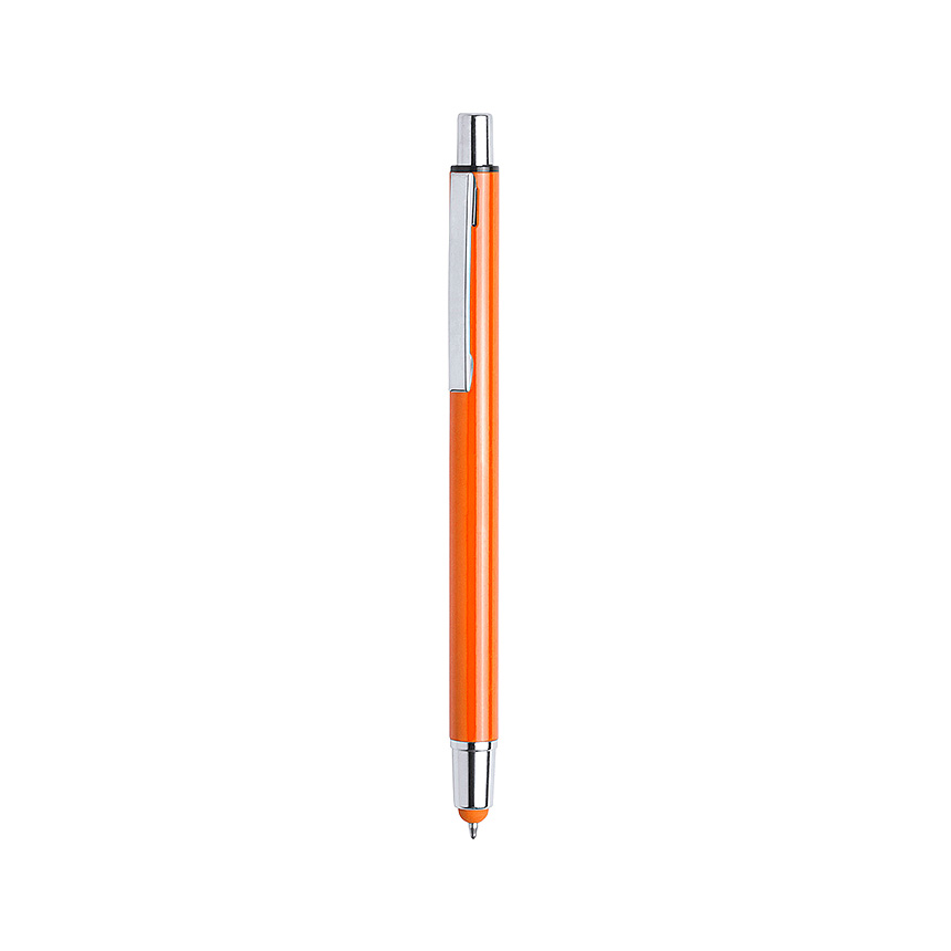 Kugelschreiber mit Druckmechanismus in kräftigen Farben, mit farblich passendem Zeiger. In glänzendem Aluminium-Finish und schwarzer Tinte. Ref: 5224 Orange - foto