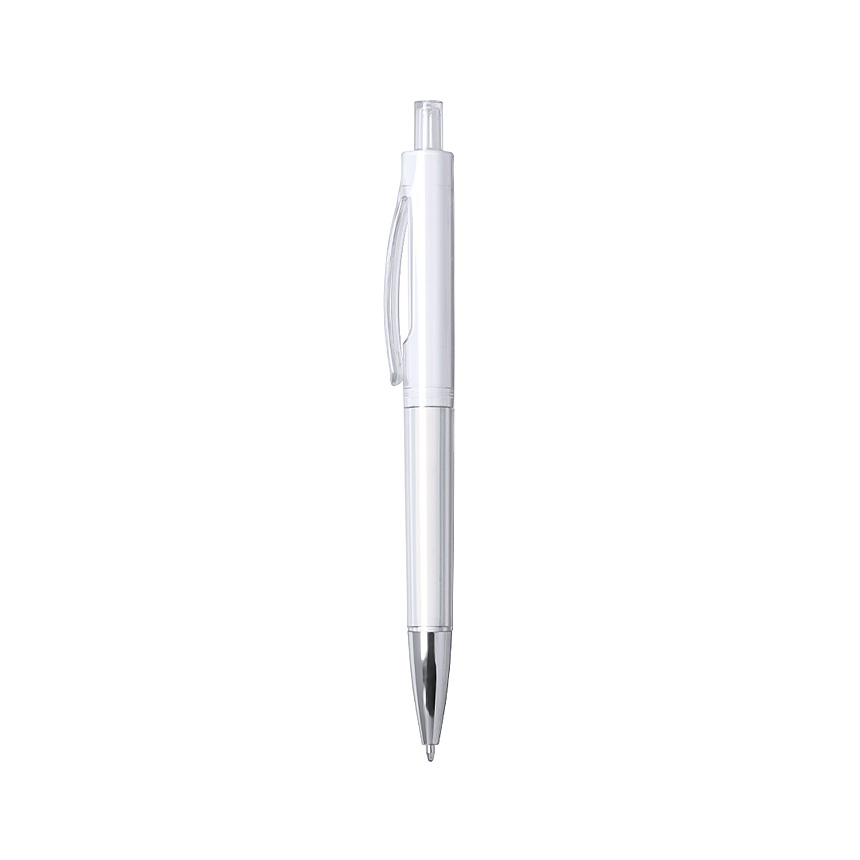 Druckkugelschreiber in origineller Kombination aus transparentem und massivem Design in leuchtenden Farben und glattem Gehäuse. Weiß  - foto