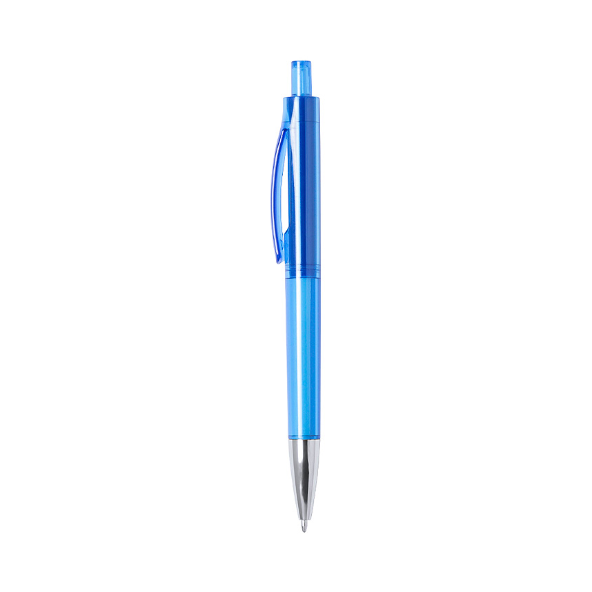 Druckkugelschreiber in origineller Kombination aus transparentem und massivem Design in leuchtenden Farben und glattem Gehäuse. blau - foto