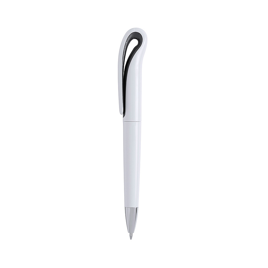 Drehkugelschreiber mit markantem zweifarbigen Design, Accessoires in leuchtenden Unifarben und einem weichen Schaft in Weiß. schwarz - foto