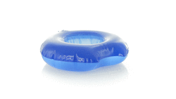 Origineller aufblasbarer Getränkehalter in Form eines angebissenen Donuts. Mit weichem Körper aus buntem PVC und einer speziellen Falte für einfaches Bedrucken.