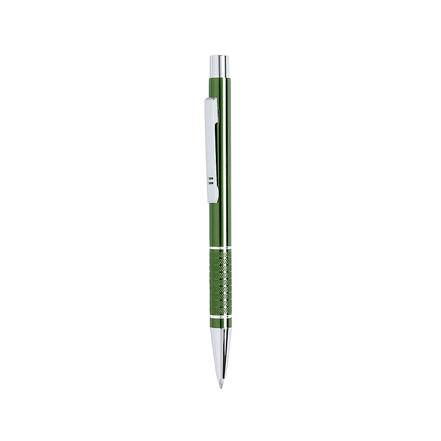 Eleganter Aluminium-Kugelschreiber mit Druckmechanismus in vielen leuchtenden Metallic-Farben und silberfarbenen Details.