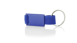 Mehrzweck-Schlüsselanhänger im monochromen Design mit Gehäuse in leuchtenden Aluminiumfarben und widerstandsfähigem Polyesterband in passender Farbe. blau - foto