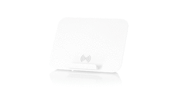 Kabelloses Ladegerät im schlichten Design mit Smartphone-Halterung. In monochromem, weißem Design und inklusive Micro-USB-Ladekabel.